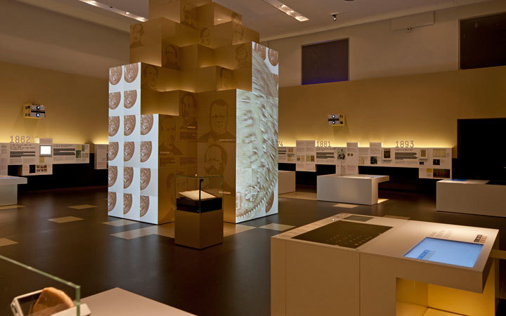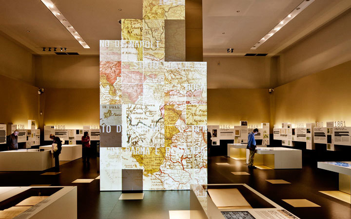 Aus Anlass der 150-jährigen Staatsgründung zeigt die italienische Zentralbank Banca d´Italia die glanzvolle Jubiliäumsschau „La moneta dell` Italia unita“. Die Präsentation wertvoller Münzen, Banknoten und historischer Dokumente spricht nicht nur ein Fachpublikum an, sondern eröffnet auch einen emotionalen Zugang zur monetären Vereinigung Italiens. Italienische Geschichte tritt mittels szenografisch durchdachtem Setting in den Raum. Es bietet dem Besucher zum einen ein kollektives Erlebnis, das über Content-generierte, multimediale Raumbilder und Rauminstallationen vermittelt wird; zum anderen taucht der Besucher individuell-spielerisch an einzelnen, im Raumbild integrierten Medienstationen in spezifische Inhalte ein.