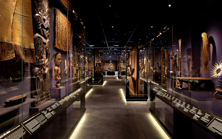 Archiv der menschlichen Vielfalt – Basierend auf der Leitidee des Schaudepots werden über 1000 Objekte auf rund 1000 Quadratmetern Ausstellungsfläche gezeigt. Sie sind in farbkodierten Großvitrinen angeordnet, die den fünf geografischen Abteilungen des Hauses entsprechen: Afrika, Amerika, Asien, Europa und Ozeanien. Zudem wird die Abteilung für Musikethnologie anhand von Instrumenten und akustischen Beispielen vorgestellt. Blickfang jeder geografischen Abteilung ist ein herausragendes Exponat, das sich als Solitär zwischen den Vitrinen einordnet. Die ausgestellten Objekte sind eindrucksvolle Botschafter der Vielfalt der Kulturen der Welt. Zahlreiche Bezüge und Querverweise sind möglich. Ein Multimedia-Guide des Museums bietet thematische Rundgänge an.