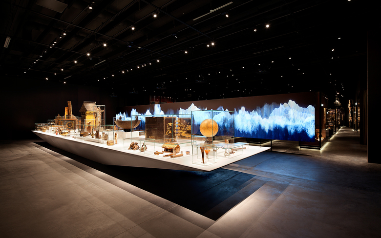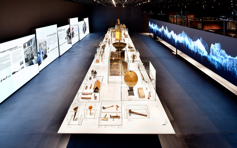 Der Besucher betritt dieses enzyklopädische Archiv über einen hellen Prolograum, der ihn auf die Vielfalt der Sammlung einstimmt und deren Ursprung erläutert. Die Exponate sind hier auf einem großen Tisch, gleich einer Arche, in thematischen Gruppen angeordnet. Sie werden als Kuriositäten, Raritäten, Exotika, als Kunstgegenstände mit Marktwert, als von Missionaren gesammelte ambivalente Objekte, als diplomatische Geschenke und schließlich als Artefakte aus der wissenschaftlichen Feldforschung vorgestellt: Ein vielfältiges, facettenreiches Ensemble, das sich zu einem beeindruckenden Bild zusammenfügt. Die großformatige Videoinstallation „Mer“ (Meer) des Künstlers Ange Leccia, die sich hinter dem Ensemble ausbreitet, verleiht dem Raum eine kontemplative Note.