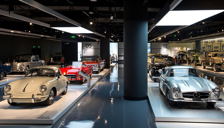 Der Collection Pavilion inszeniert Meilensteine der Automobilentwicklung aus den Jahren 1900 bis 1975. Das Raumbild entspricht einem exklusiven Parkdeck, auf dem 39 Fahrzeuge in sechs chronologischen Entwicklungslinien aufgereiht sind. Herausgehoben, auf glänzenden Aluminiumpodesten, sind so genannte ’Dream Machines’ – Traumautos, die zu jeder Zeit als unerschwinglich galten. Originale Designprodukte sowie Filme, Fotos und Sound ergänzen das Erlebnis Automobil und lassen den Besucher in vergangene Zeiten eintauchen. Der Collection Pavilion befindet sich im ersten Obergeschoss des Shanghai Auto Museums in Shanghai-Anting.
