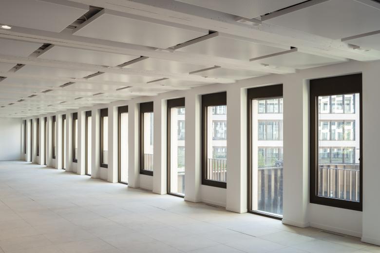 Neun Etagen an der Avenue de la Grande Armée und fünf Etagen an der Rue Pergolèse sind für Büros vorgesehen. Hochflexible Flächen erlauben die Teilung für bis zu drei Mietern pro Etage. Die ursprüngliche Betonstruktur wird freigelegt; nur wenige Materialen bestimmen die Inneneinrichtung – verschiedene Arten von Beton, Bronze und Holz für die Bodenbeläge sowie unterschiedliche Metalldecken bringen Nuancen im Detail.