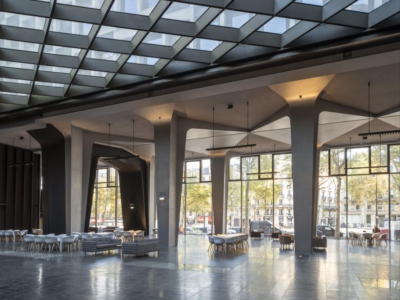Eigentlich sollte das Gebäude abgerissen werden, doch die Stadt Paris intervenierte. Der frühere Hauptsitz von Peugeot Citroen an der Avenue de la Grande Armée wurde zum Erneuerungsprojekt. In Sichtweite des Arc de Triomphe zählt der ehemalige Firmensitz zu den prägenden Häusern am Boulevard. Formal zeigt sich der Entwurf des Büros Sainsaulieu in der Sprache spätmodernen Architektur (auch International Style genannt) mit einer besonderen Attraktion: der zweigeschoßige, 100 Meter lange Ausstellungsraum hinter der 110 Meter langen Fassade vermittelte den Unternehmenszweck und eine klare Aussage – liberté-egalité-mobilité.