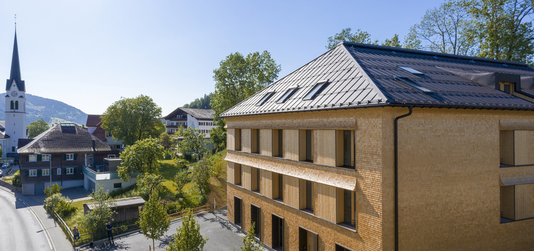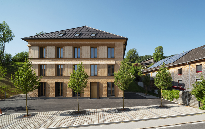Prof. Dietmar Eberle wurde im Bregenzer Wald geboren. „Ich komme aus einer historisch armen Gegend. Hier wird es den Menschen mitgegeben, mit den Dingen sorgfältig umzugehen.“ Erst kürzlich wurde in dieser Region, genauer gesagt in Lingenau, ein Therapie-Zentrum samt Geschäftslokal und Wohnungen für den Arbeitskreis für Vorsorge und Arbeitsmedizin eröffnet. Mit der Achtsamkeit der Altvorderen erfolgte die städtebauliche Einpassung durch Baumschlager Eberle Architekten, sodass hier ein neuer Ort entstanden ist. Ebenso sorgfältig gezeichnet, umhüllt nun eine Schindelfassade das Haus. Doch das Haus leistet mehr: Dank der 50 Zentimeter starken Ziegelkonstruktion und einem ausgeklügelten Belüftungsystem über die Fensterflügel kommt das Gebäude ohne kurzlebige technische Installationen für die Klimatisierung aus. Die Wohlfühltemperatur von 22 bis 26 Grad übers Jahr hinweg wird erreicht. Damit folgt das Haus dem Konzept des prototypischen Bürogebäudes 2226 im nahen Lustenau, angepasst an einen völlig anderen kulturellen Kontext.