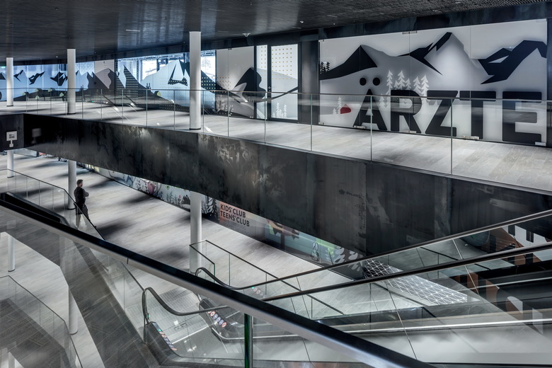 In den drei Geschossen der Überbauung sind Cafés, Läden, Dienstleister, ein Restaurant und ein Hotel untergebracht. Vom Restaurantgeschoss aus erfolgt auch die Anbindung an die „Weiße Arena“, das Skigebiet der Region Flims.