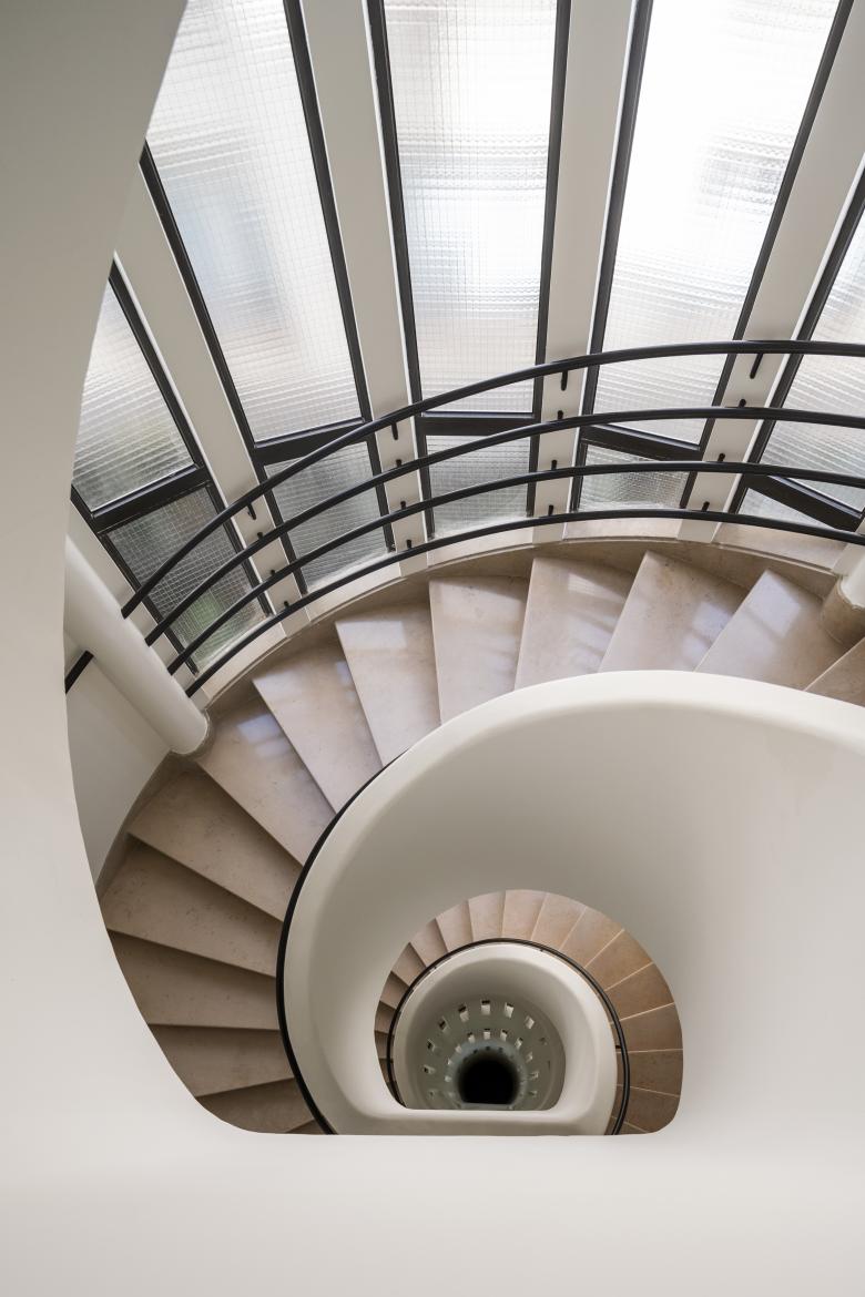 Kompetenz in Sachen Nachhaltigkeit bewies unser Team in Paris diesmal an einem besonders komplexen Projekt. Aufgabe war es, das denkmalgeschütztes Gebäude „Le Palacio“ mit den Anforderungen der Gegenwart und den Notwendigkeiten der Ökologie zu verbinden. Das Bürohaus von Maurice Hennequet (1887-1949) an der Place Madeleine ist ein Juwel der späten 1930er Jahre, mit Elementen des Style Paquebot oder Streamline Modernism, wie diese Strömung in Frankreich und Amerika jeweils genannt wird.
