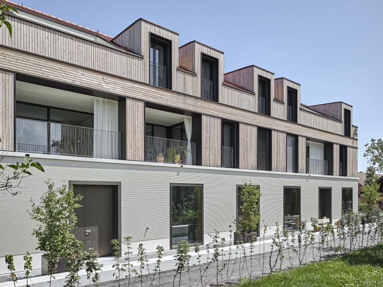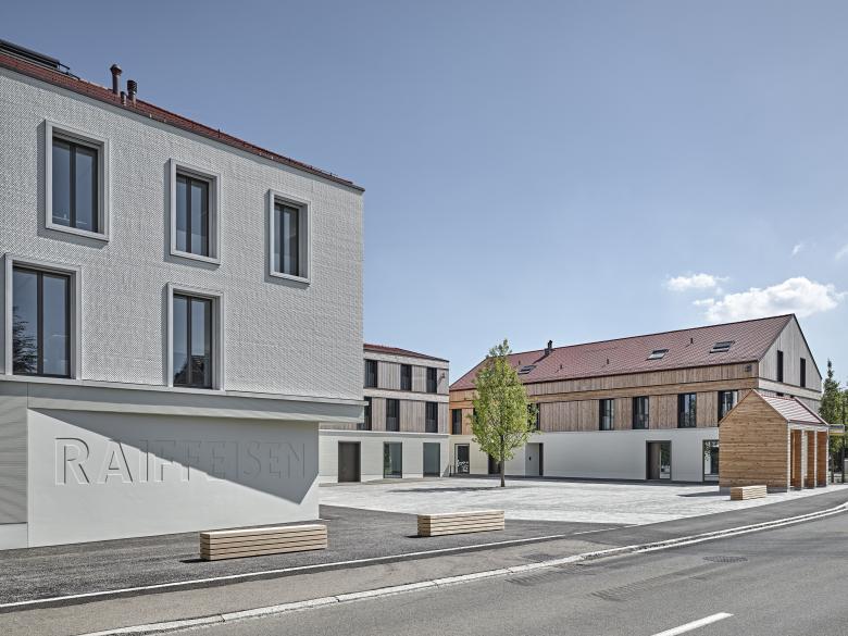 Zersiedelung, Verlust der Mitte, Kommunikationsdefizite oder die kleine Langeweile: Das Leben auf dem Lande hat so seine Mangelerscheinungen. Es geht auch anders, wenn Architekten und Bauherren sich eins sind. So geschehen in Altnau am Bodensee: Das Bankgebäude, Gewerbeeinrichtungen und Wohnungen umschließen einen Platz. Raum entsteht aus der Beziehung zwischen den (gebauten) Dingen. Der Nutzungsmix schafft den Ort. Die Sprache der Architektur ist verständlich: sie nützt das Vokabular der regionalen, alemannischen Sparsamkeit.