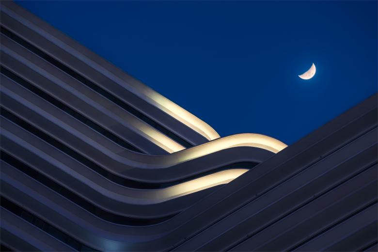 Features: The result was an organic composition of three abstract sculptural forms that appear to meld together or split apart depending on the viewer’s perspective. Gardens on the staggered roofs offer panoramic views over the city. The project is defined by its horizontally layered façades with profiled concrete strips running in gentle curves around the buildings and underlining their object-like autonomy.