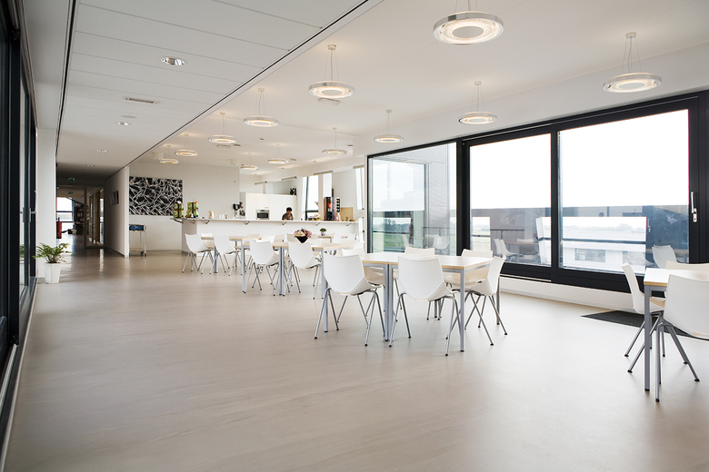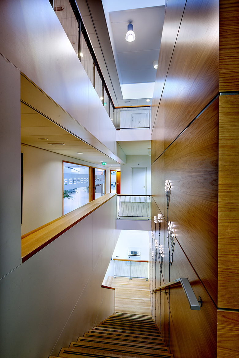 In the building several sustainable measures are incorporated, such as concrete floor slabs as thermal active system, subterranean hot & cold storage, and a low energy lighting and control system, set up as a Philip's pilot project.