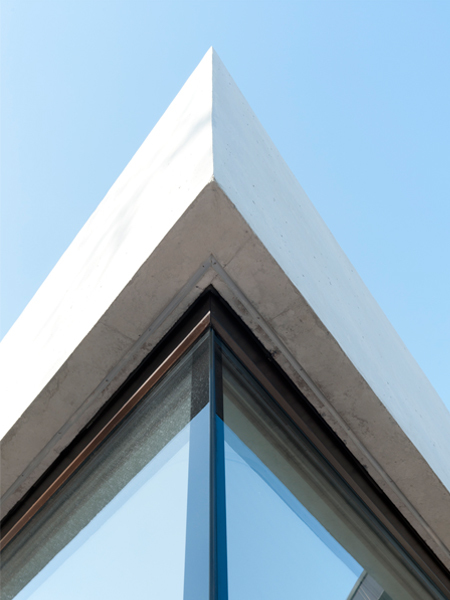 La structure de l’extension et la surface de la terrasse sont en béton. Le garde-corps du balcon agit comme une poutre de support de la dalle de toiture.