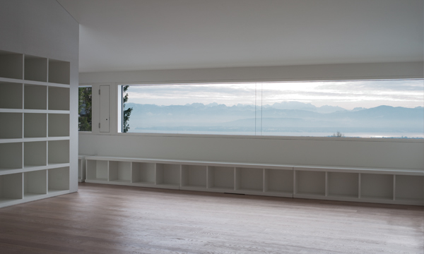 Le village de Givrins se situe entre les villes de Genève et Lausanne sur la rive Nord du Lac Léman. La villa s’implante sur un site en pente douce entre Alpes et Jura. Un socle en béton s’enfonce dans le terrain créant une horizontale de référence face au Lac (terrasse) et se replie au nord (volumes utilitaires) de manière à définir la limite entre les espaces publics et l’espace privé de la villa.