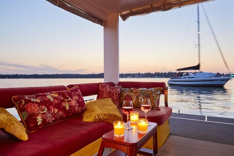 The five-year-old boat caught Marianne’s eye, its exterior’s resemblance to a bus on the water and the potential for the interior design quickly sparked her interest. With enough space for up to two persons as well as guests, it had the potential to easily become a personal retreat for reenergizing and a cozy getaway to invite friends and family.