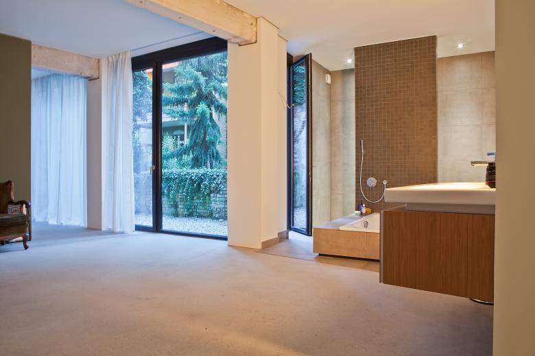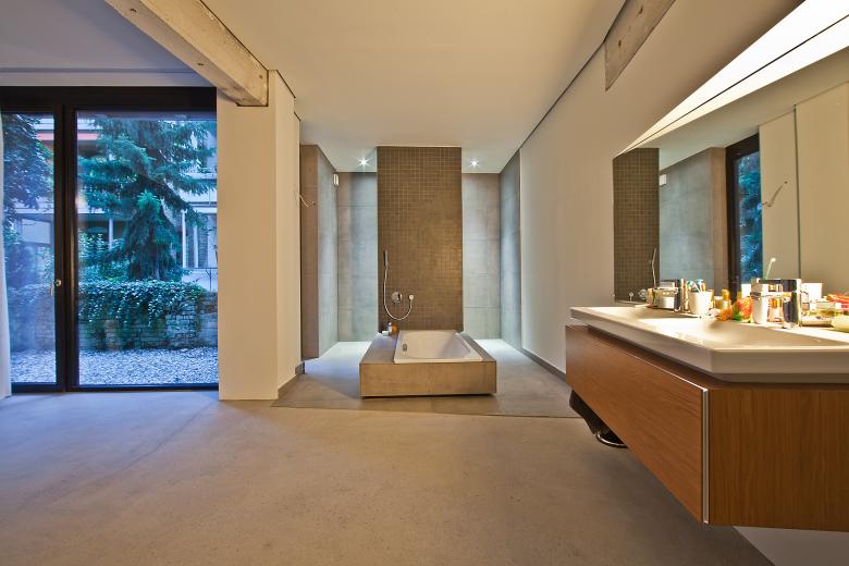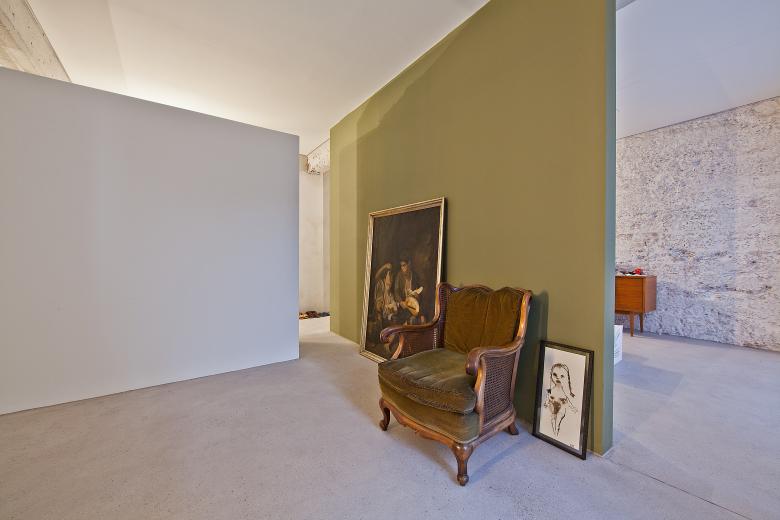 Das Projekt bildet auf Grund der topografischen Lage am Hang das dritte und vierte Untergeschoss eines Wohnhauses. Drei Seiten sind komplett im Erdreich eingebunden und wurden in den dreißiger Jahren mit Einkornbeton direkt gegen das Erdreich betoniert. Diese einzigartige Struktur wurde im Innenraum geschlämmt und konserviert und gibt den Räumen den entsprechenden Industriecharakter. Die raumhohen Verglasungen orientieren sich nach Norden in einen Innenhof und bilden den offenen Übergang des Wohnens zur Stadtlandschaft.