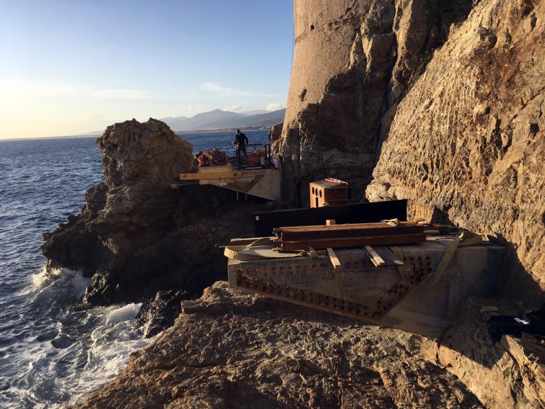 Ancrée dans la roche, Aldilonda longe la côte rocheuse à cinq mètres au-dessus du niveau de la mer. Le rocher constitue la base naturelle massive du puissant mur d'enceinte de la forteresse de Bastia, qui a donné son nom à la ville. Jusqu'à présent, la côte rocheuse sous le mur de la forteresse n'était que partiellement accessible.
