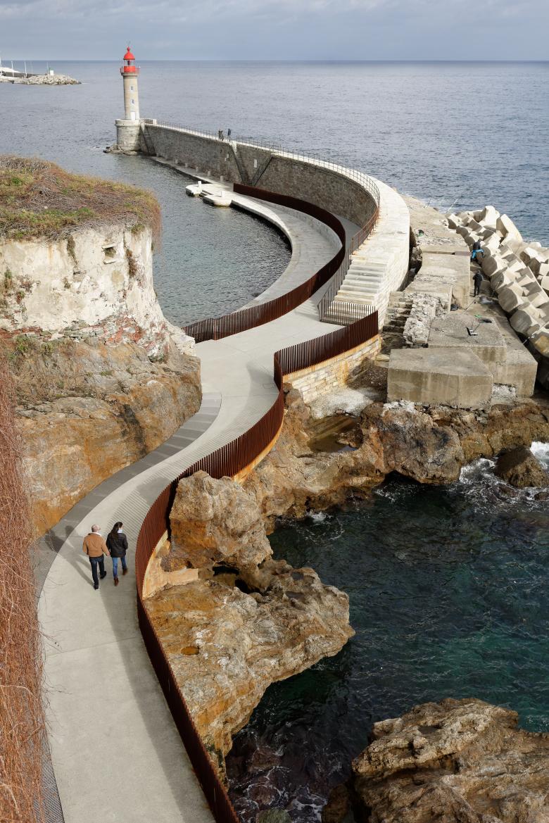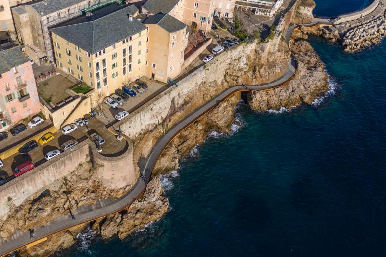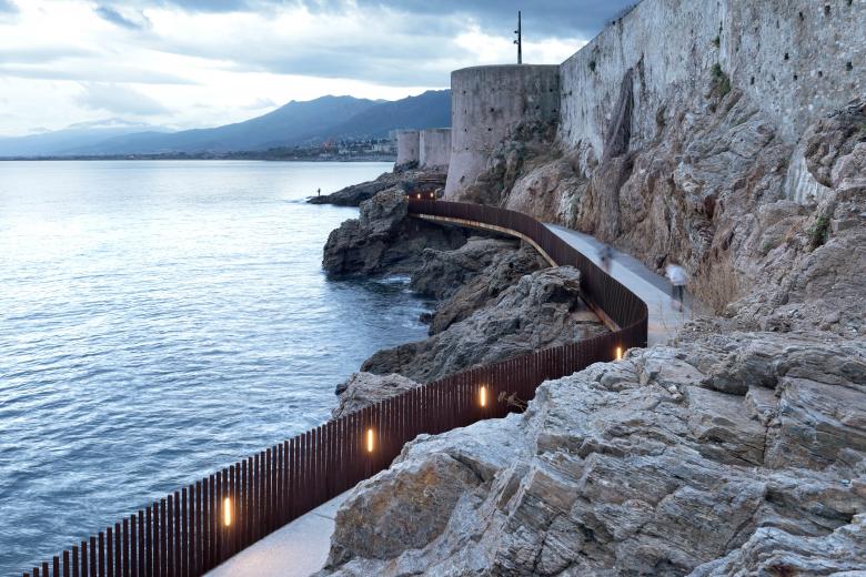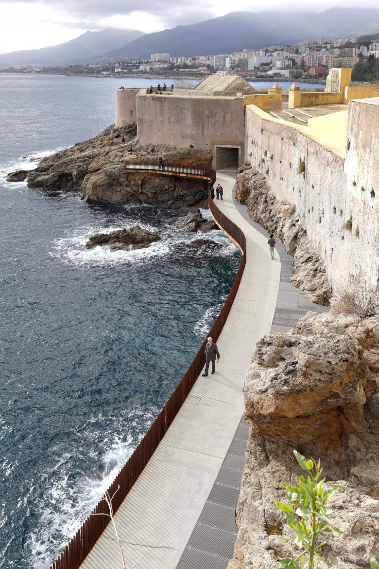 A Bastia, deuxième ville de Corse sur la côte nord-est, Dietmar Feichtinger Architectes a réalisé la promenade Aldilonda, qui signifie "Au-dessus de la mer" en corse, en association avec les architectes locaux Buzzo Spinelli, Insitu Paysage et les ingénieurs de Sbp.