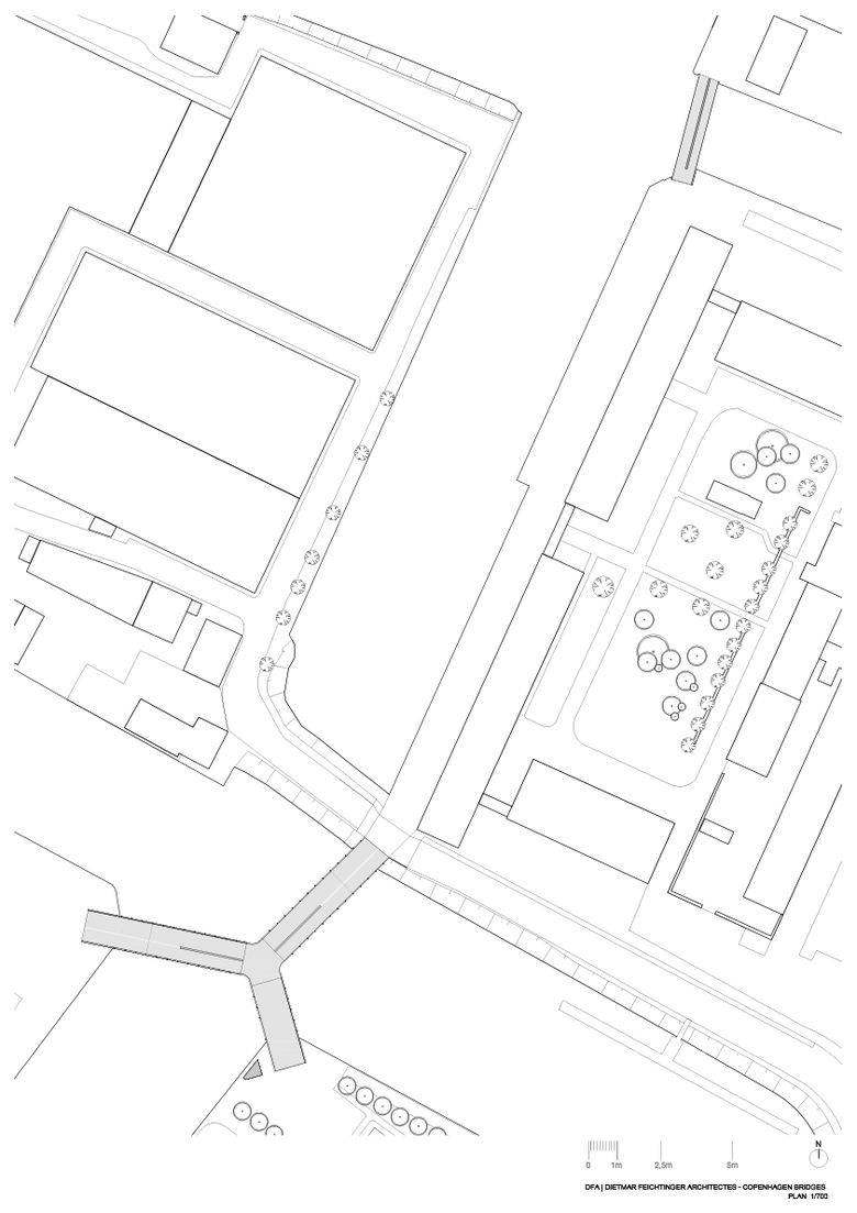 Par leurs simplicités, ils forment un contraste avec le caractère monumental des bâtiments. Les ponts qui sont destinées aux piétons et aux cyclistes offrent un maximum de transparence et de légèreté.