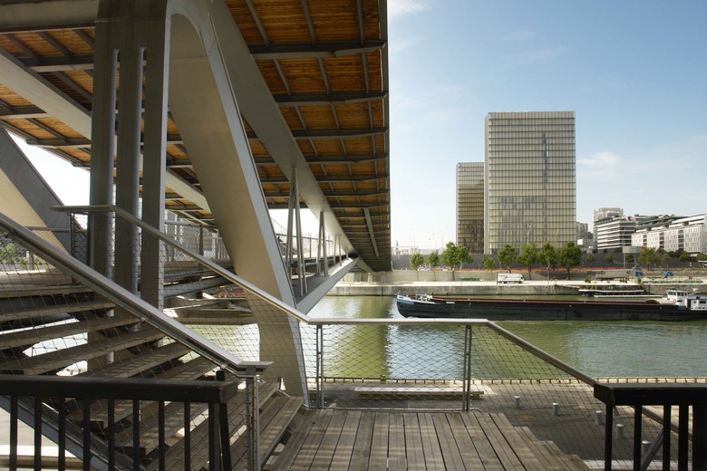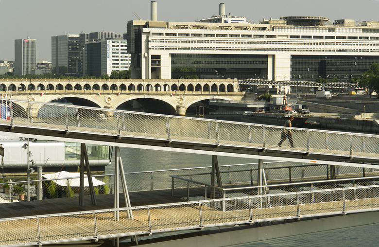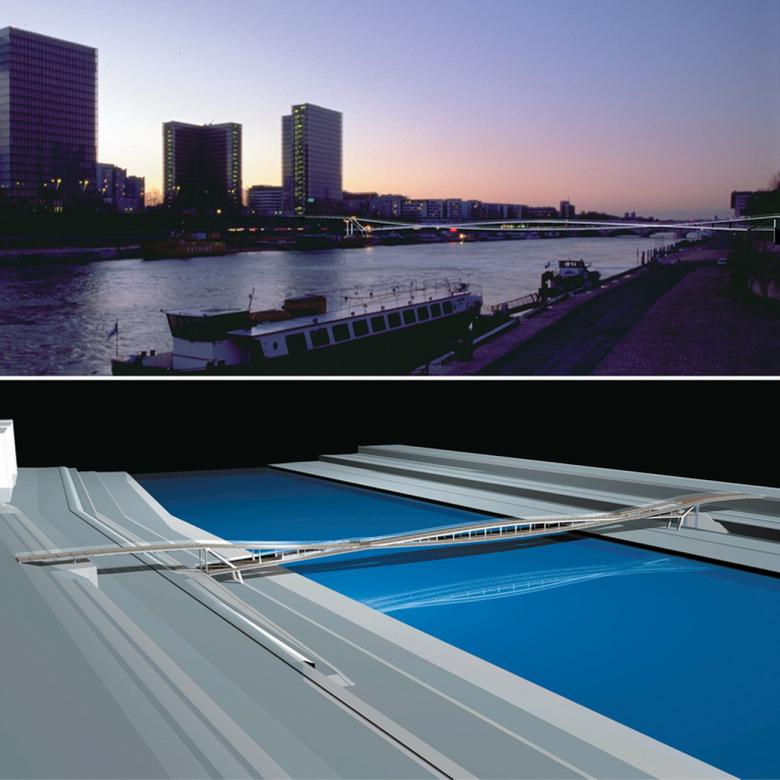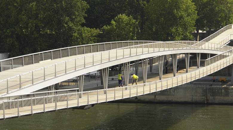 The Simone de Beauvoir footbridge seems to float in the air, carried along by its own momentum, simply depending on its own audacity. Grace is conferred by its physical lightness and elegance by its apparent technical simplicity. It is an event in itself: those using it are less motivated by a need to cross the river than by the pleasure of being there to contemplate the river, the passing of time, and the new landscape that it reveals and arranges. Without it, the river Seine and its surrounds would now seem incomplete.