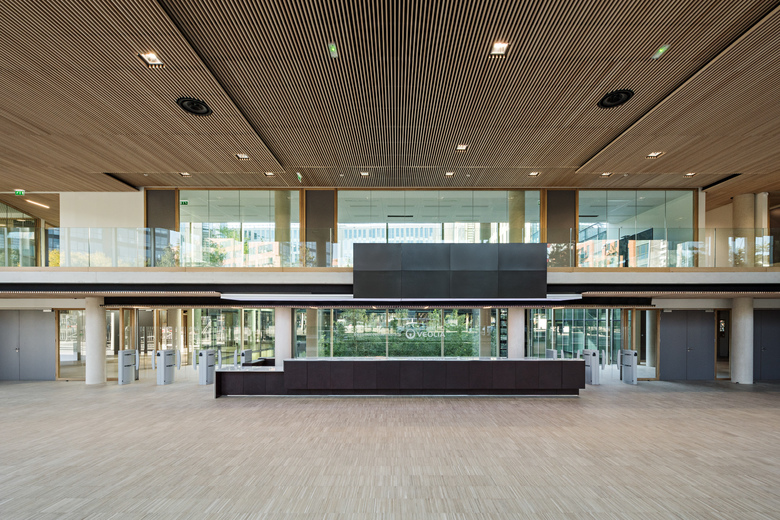 Legible materiality. The construction remains uncovered as it is “what makes the architecture”. This means that the columns are registered as structural elements without any major technical tricks. The materials - natural wood, exposed concrete, anodized aluminium - are emploid in exactly the same way; they are immediately “legible” and convey a certain relaxed quality.