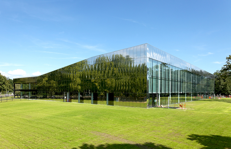 L’extension au sud complète l’offre pour les familles. Elle contient une pataugeoire et un bassin d’apprentissage. La façade s’ouvre largement vers le sud sur une terrasse en bois. La façade ouest de l’extension est entièrement vitrée en continuité avec la façade du hall principal avec le grand bassin.