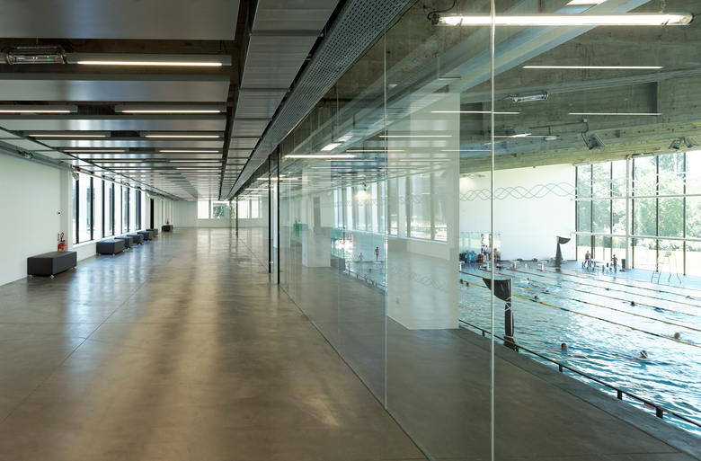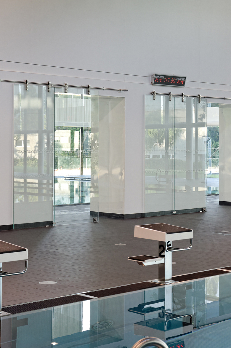 Tous les espaces de la piscine deviennent lumineux par des larges ouvertures vers l’extérieur, en façade et en toiture. Des transparences entre les espaces sont créées, permettant au visiteur de suivre les activités dans la piscine depuis le hall et l’espace des pas perdus en mezzanine en liaison directe avec les tribunes.
