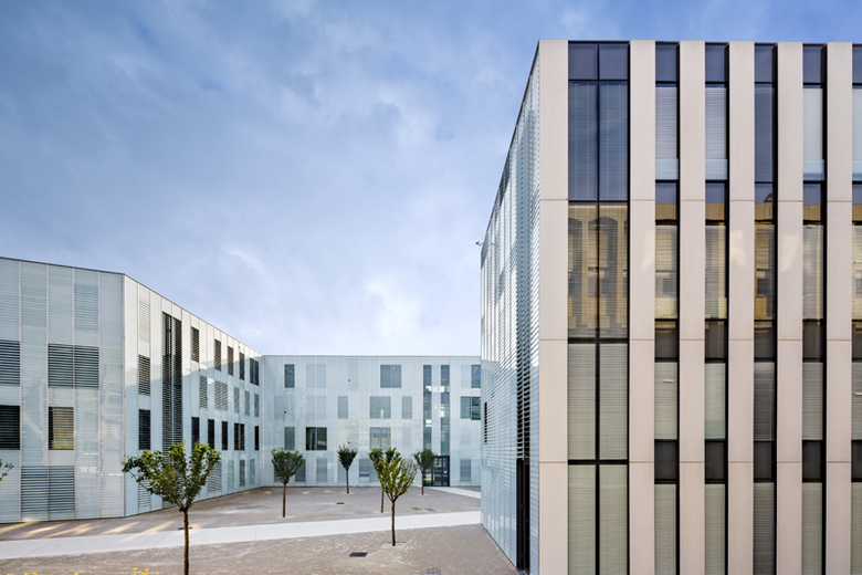 Consequently, Feichtinger opted for restraint, if not to say architectural neutrality. He prefers a space to a building, an empty volume to a full one, and a place to a piece of architecture. By breaking up the brief into a number of small buildings he allows an entrance to the campus to develop. Through the considered way in which he positions the buildings and the subtle expression of the facades he gives the place an identity. These are two important characteristics of this project which Feichtinger achieved by appropriating the characteristics of the campus and reinterpreting them. This proved to be a discrete way of integrating this small extension in one of Francess most important university complexes.