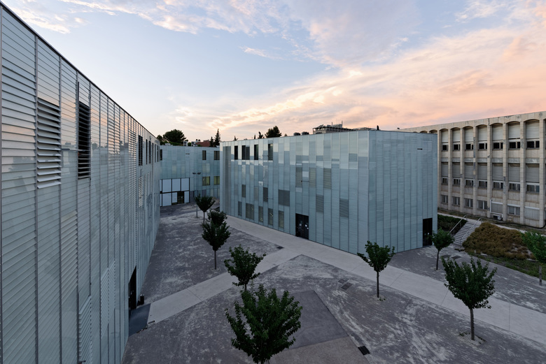 In approaching the project for the extension of the humanities faculty of Aix-en-Provence University Dietmar Feichtinger found himself confronted with a contradiction. On the one hand the extension, by nature of its position, had to mark an entrance to the campus, but on the other neither the brief nor the context suggested a specific form of architectural expression. The brief, relatively modest in terms of floor area (8000 m²) and banal in terms of content (lecture halls and offices), contained no elements such as an auditorium or large library that would have called for strong architectural expression. In addition the dreary mediocrity of the context spoke against a too striking kind of architecture. Given the featureless nature of the periphery of this provincial town with its groups of little houses and allotment gardens, banal workshops, pizzerias, and here and there a social housing block, even a minor architectural gesture would have seemed unsuitable, indeed even provocative.