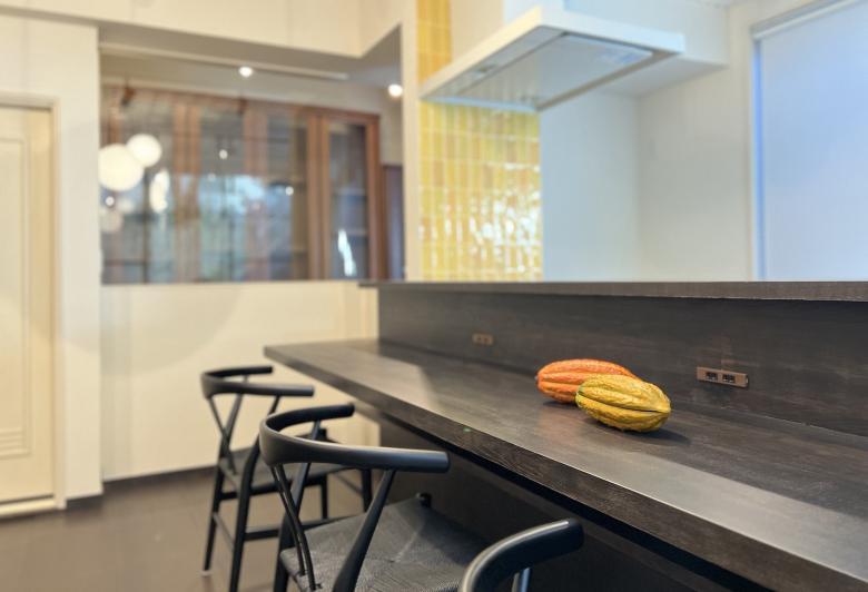 自家焙煎チョコレート専門店CACAO SALON A-fukuが運営するホットチョコレートに特化したカフェ。カカオ豆にこだわり、カカオ豆本来の味わいや産地の違いによる個性を大切にした手作りチョコレートという工房のコンセプトが伝わるカフェとするために、白を基調としながらもチョコレートやカカオ ポッドの色合い(濃褐色、黄、オレンジ、グリーンなど)をちりばめた、落ち着いた雰囲気のカフェを目指しました。