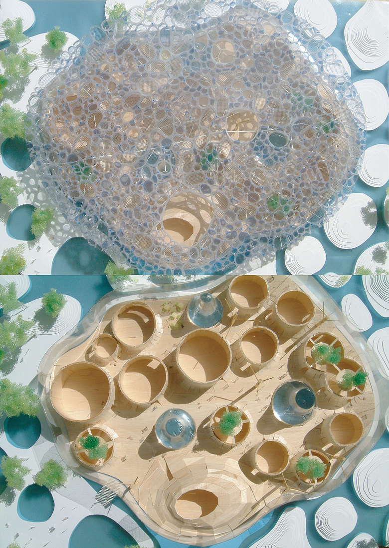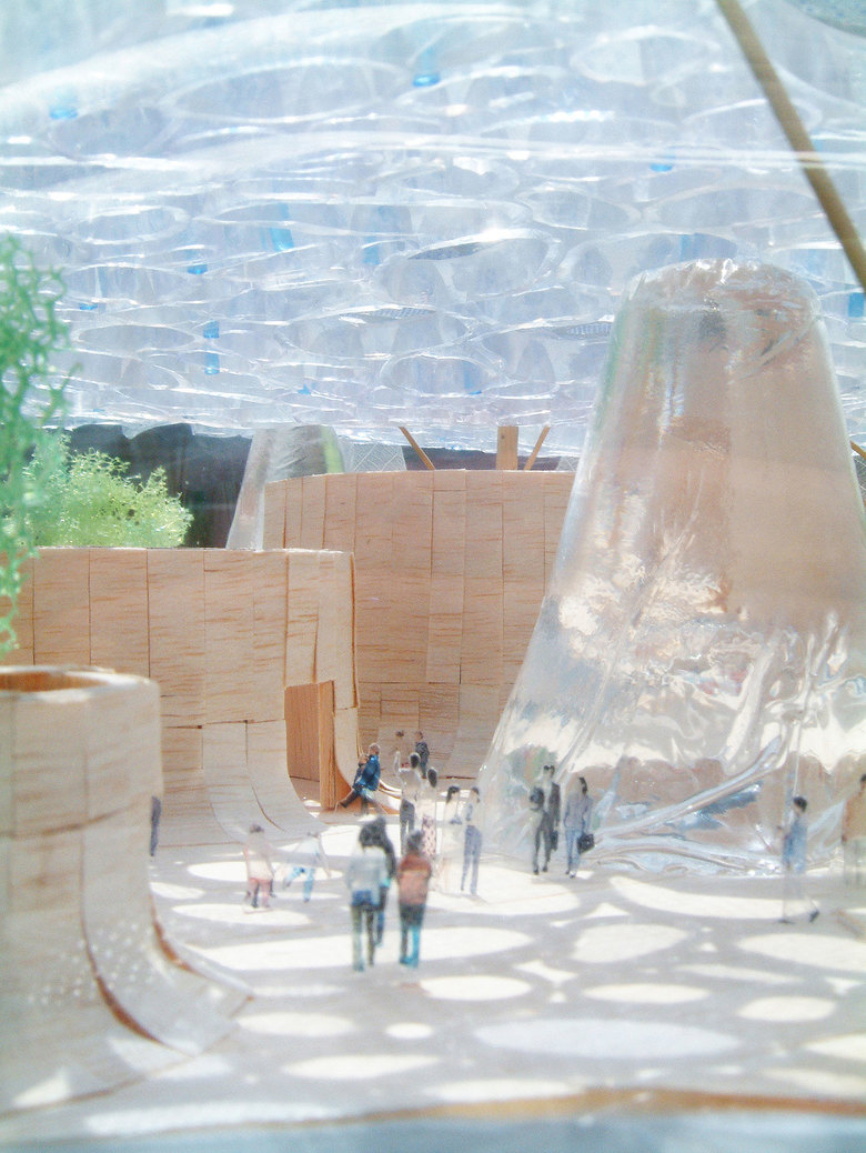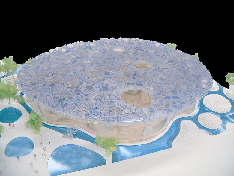 太陽エネルギーをテーマとして韓国で開催された国際コンペティションで、グランプリを受賞したプロジェクトです。工学院大学藤木研究室の学生たちと一緒に制作しました。光州市の中心部に敷地が与えられ、自然エネルギーの活用と、その研究・展示を目的とする「ソーラーサイエンスセンター」を設計せよ、という課題でした。