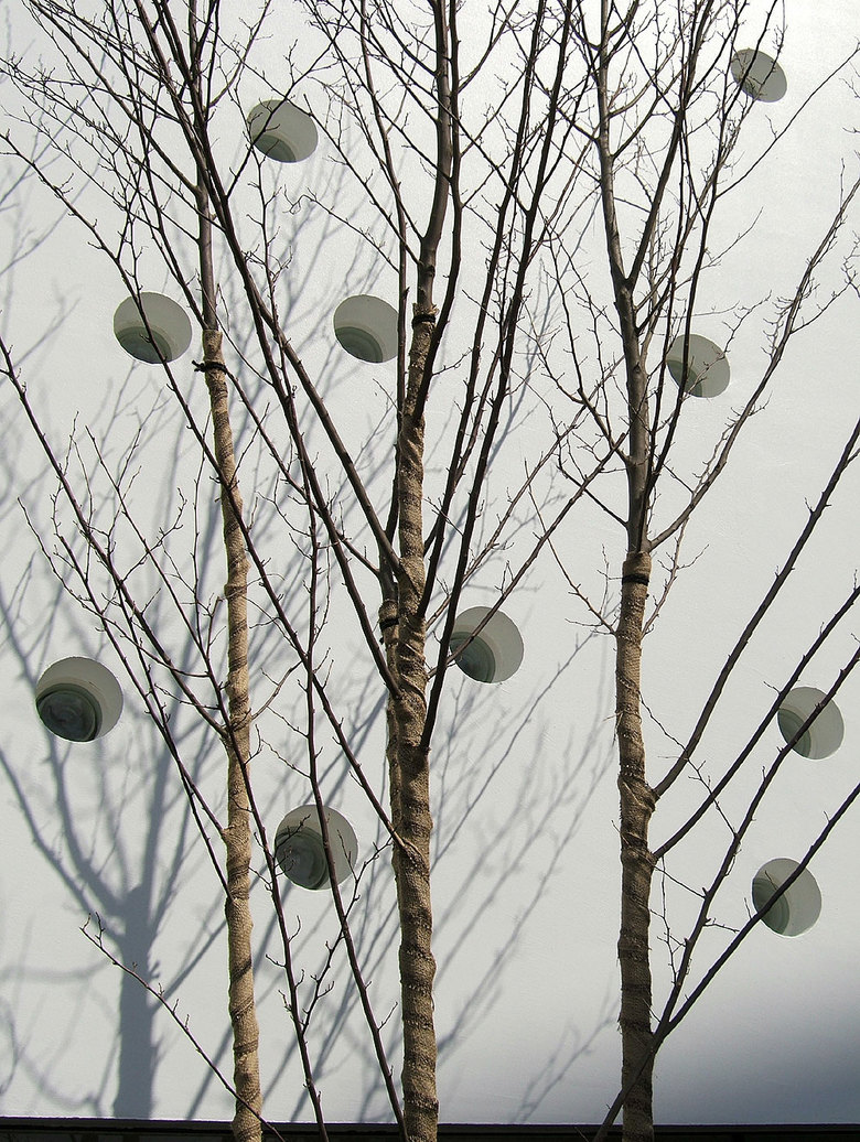 殺風景で無愛想な交番のイメージを払拭し、市民サービス施設として位置づけるシンボルとして樹木(エゴノキ)を1本植えました。1本の木が季節感と交番に対する親しみの気持ちをいだかせてくれる事でしょう。
