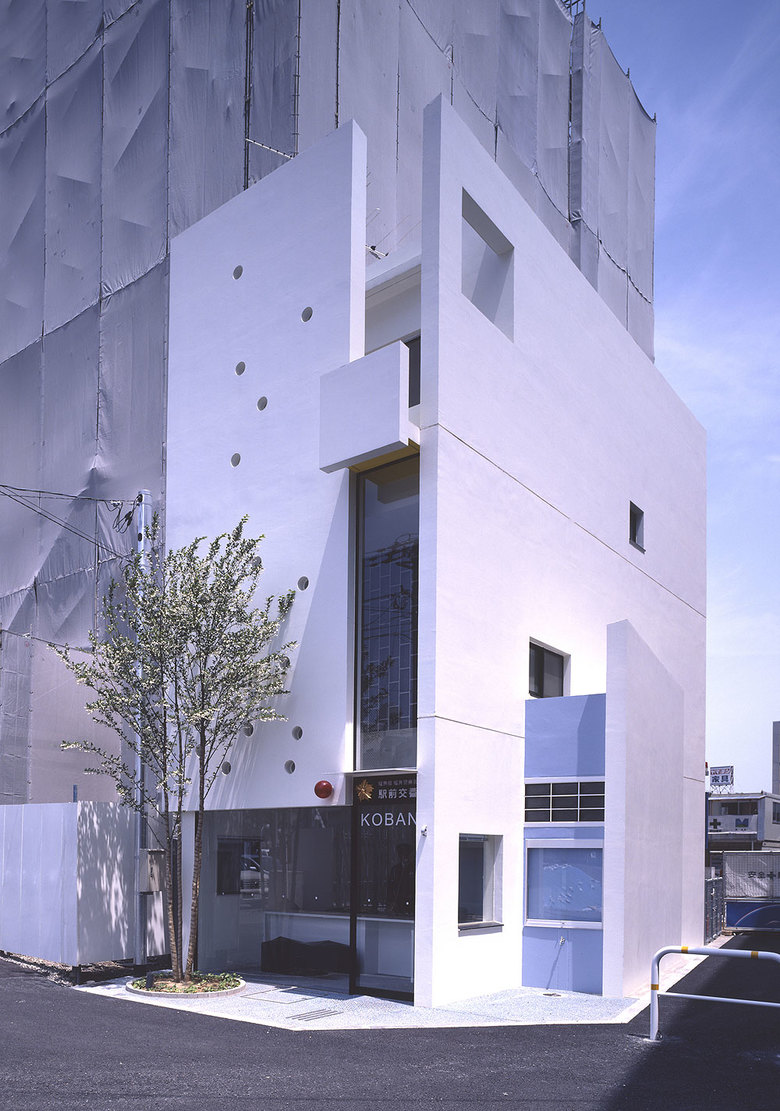 この福井駅前交番は、JR新福井駅の完成と駅周辺の再整備に伴い新築されたものです。福井県の玄関口として新しく生まれ変わろうとしている駅周辺の景観と、街角に相応しいデザインに配慮しました。また、低層でありながらもランドマークになりうるようなデザインを目指しました。
