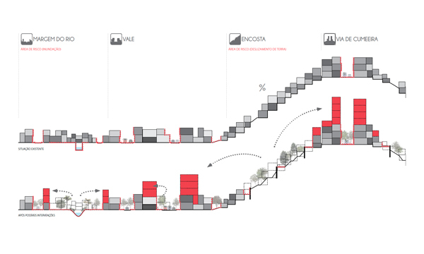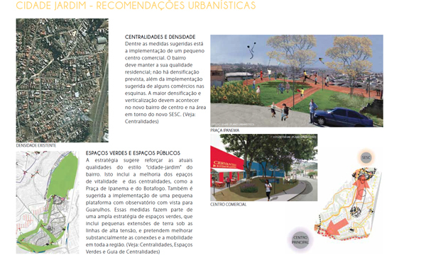 The FAR in this zone is restricted to 1. The concept of the plan is based on three elements: The “Gate to the Serra da Cantareira” in the North, the new district center in the South, and a series of urban design and architectural measurements within the entire neighborhood, focusing on public and green spaces and mobility.