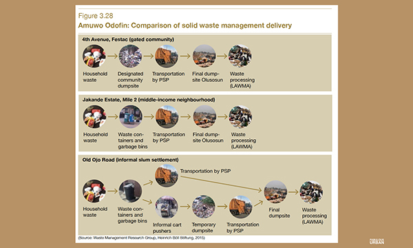 Residents in Lagos are often stunned by developments in their city: new residential estates are springing up without tarred access roads and appropriate drainage canals for flood water. Riverine areas along the lagoon used as fishing ground for the local communities are converted into tank farms attracting hundreds of tankers crossing residential areas. The Ministry of Physical Planning and Urban Development has developed model city plans for all the local government areas in Lagos, but they are all too often ignored by economic and political interests. Instead, projects with immense negative social, ecological and economic consequences are imposed on residents and business owners. This study had a closer look at the areas of housing, slums and informal settlements, urban mobility and transportation, solid waste management and urban mega projects to examine the existing laws, instruments and policies and how they have been applied to the four analyzed case studies. For example the research teams discovered that the development plan for the Lekki Free Zone was designed by the Chinese investors based on Chinese urban planning laws before it was later included into the existing Lekki master plan. Another example is the slum regeneration process in Olaleye-Iponri community implemented in two phases. Yet, 31 years after the commencement, there has been no significant improvement for the community. A few housing units have recently been completed and are now sold to prices which are not affordable for the original residents. All the case study reports vigorously ask for the revival of the local government administrations in Lagos, which have been sidelined over the recent years for several reasons. The current top-down and ad-hoc approach will most likely fail in providing much needed infrastructure and a livable environment in times of a global increase in the influx into the cities.
