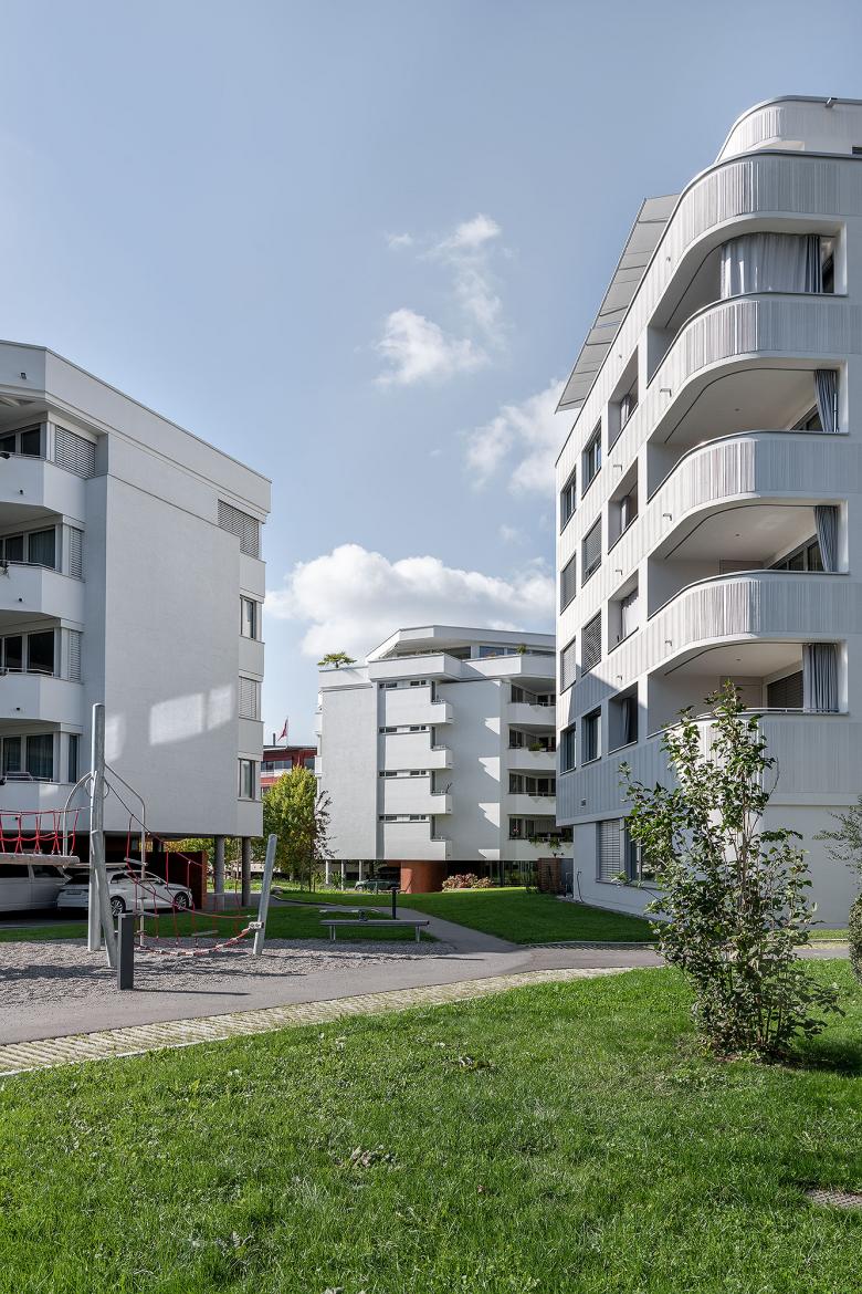 Die zwei zu sanierenden Liegenschaften im Würzenbachquartier stammen von Josef Gasser, dem Architekten einiger prominenter Bauten der Stadt Luzern, wie z.B. dem Heimbachschulhaus. Die Wohnhäuser wurden sanft saniert und im «Geiste des Originals» revitalisiert. Nur die neuen Attikas zeugen vom Eingriff und der Transformation. Die Erarbeitung der Gesamtstrategie wurde durch das Hochbauamt der Stadt Luzern eng begleitet und die Massnahmen an den Altbauten mit der städtischen Denkmalpflege in Varianten besprochen. Der Neubau im Osten verdichtet das Quartier und komplettiert die Siedlung.