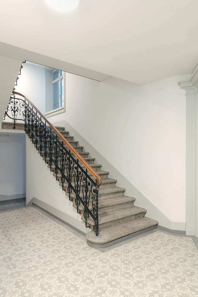 Das Haus an der Moosstrasse 19 wurde 1907 als Teil eines Mietshofgevierts von F.E. Japke und Felder & Cie. erbaut und liegt an prominenter Lage im Neustadtquartier. Alle wesentlichen Fassadenelemente sind in ihrem Ursprung erhalten. Allerdings war der Ausdruck des Gebäudes im Verlauf der Jahre durch verschiedene Sanierungen und Farbveränderungen verunklärt worden. Mit dem Umbau nutzten wir die Chance, das Ursprüngliche, das Einzigartige und den Charme dieses Gebäudes wieder ans Tageslicht zu bringen und den Originalzustand so weit als möglich wiederherzustellen. Im Inneren standen die sanfte Sanierung des Bestands, die Integration des neuen Aufzuges und der Einbau von zwei zusätzlichen Wohnung unter dem Dach im Fokus.