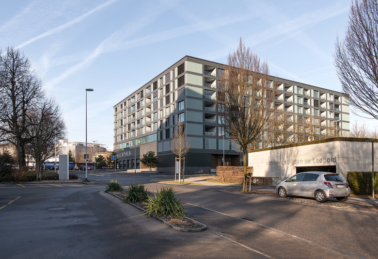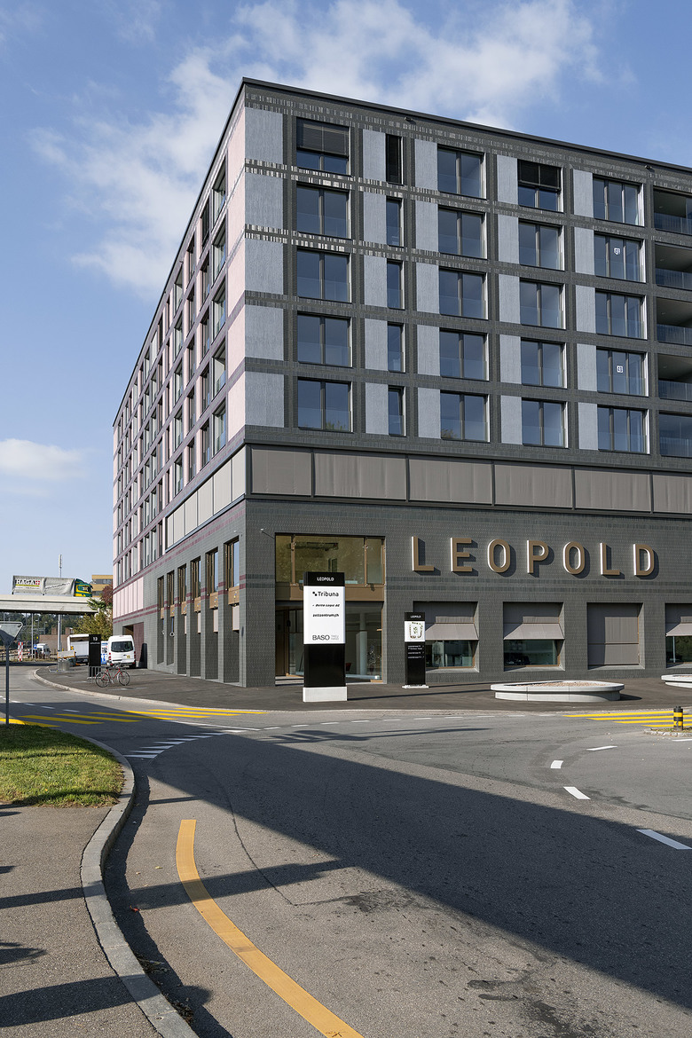 Durch die gesplitteten Geschossdecken in den unteren Geschossen bettet sich das Gebäude selbstverständlich und unspektakulär in die komplexe Topografie ein und reagiert plausibel und der Logik folgend auf die unterschiedlichen Höhenverhältnisse der Umgebung. Das Gebäude erhält zwei unterschiedliche Gesichter. Ein äusseres, das zur Stadt hin Solidität und Festigkeit ausstrahlt, und ein inneres, das zusammen mit der begrünten Innenhofgestaltung als Kontrapunkt zur urbanen Aussenwelt eine organischere Weichheit entfaltet. Das äussere Erscheinungsbild wird von einer rhythmisierten Klinker-Skelettstruktur geprägt. Die Innere verputzte Fassade wird mit einem organisch-ornamentalen Muster versehen. Diese tapetenartige Behandlung der Fassade und die hügelige Hofwelt ergeben zusammen einen atmosphärischen Begegnungsort für die Bewohner.