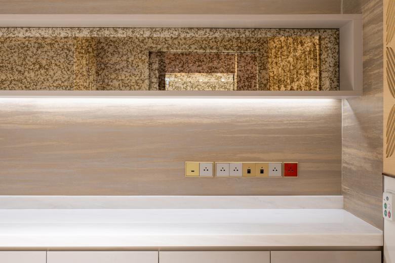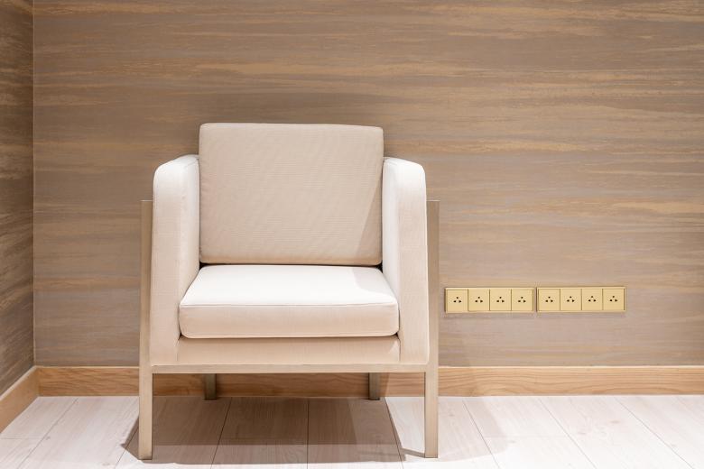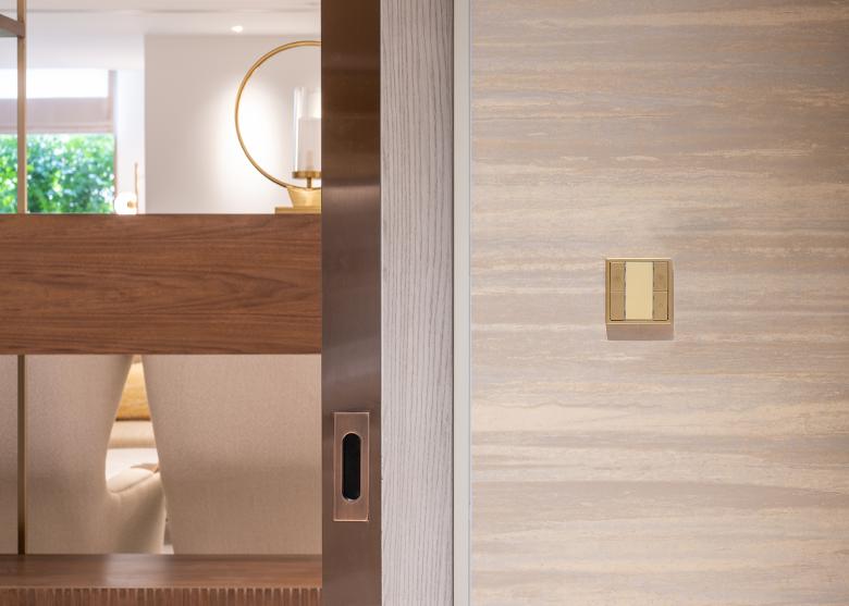 Der Komfort der Patienten wird durch moderne, dezent integrierte Technik unterstützt. Miaja Design wählte die zeitlose Serie LS 990 von JUNG in den Oberflächen Edelstahl und Messing klassisch, um die beruhigende Ästhetik des Krankenhauses zu ergänzen und gleichzeitig die funktionale Integrität zu wahren. Die eleganten Taster und Steckdosen der Serie fügen sich nahtlos in das Gesamtdesign ein. Die Integration des JUNG KNX-Systems in Verbindung mit den F 50-Tastern ermöglicht eine intelligente Automatisierung im gesamten Patientenumfeld. Von der Lichtszenensteuerung bis zur automatischen Anpassung der Raumeinstellungen passt sich das System den Bedürfnissen von Patienten und Personal an und sorgt so für ein optimiertes Pflegeumfeld.