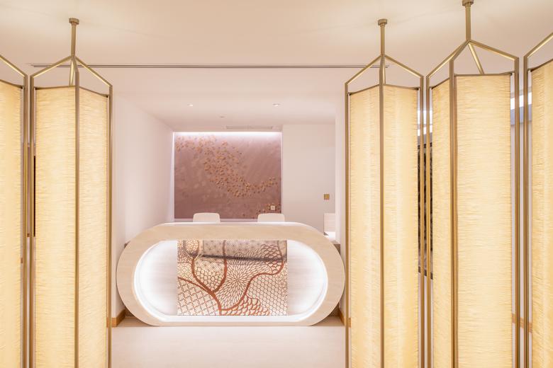 Getreu seinen Wurzeln - Bumrungrad bedeutet auf Thailändisch „für die Menschen sorgen“ - geht die Philosophie der Fürsorge des Krankenhauses über die medizinische Behandlung hinaus und erstreckt sich auch auf die Innenausstattung. Architektur als Therapie - so definiert Isabelle Miaja den vielschichtigen Ansatz für die Innenräume von Bumrungrad Vitalife und schafft mit weichen Elementen und von der Natur inspirierten Motiven Räume, die beruhigen und aufmuntern. Gedämpfte Erdtöne, sanftes Weiß und metallische Akzente durchziehen die gesamte Einrichtung, vom Empfangsbereich bis zu den ruhigen privaten Behandlungsräumen. Diese Farben dienen nicht nur der Dekoration, sondern reflektieren das Licht auf einladende Weise. Wandverkleidungen mit Bergmotiven und zarten Blumenmustern spiegeln die Texturen der Natur wider, erden den Raum und verbinden die Patienten mit einer größeren, erholsamen Geschichte.