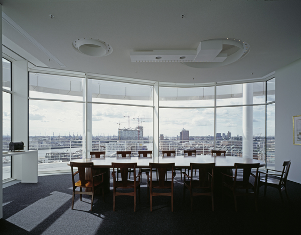 Situated on a podium overlooking the sandtorpark, an oval-shaped tower creates a partition between the park and the plaza. With a gross area of 15,4000 square meters on 12 floors, the building houses eleven upper floors of office space and an additional penthouse level, labeled as a “sculptural roofscape” with conference rooms and breathtaking views. The tower property also includes three subterranean levels designated for parking and technical spaces. A number of innovative features were developed specifically for the tower. New mechanical systems and facades were carefully designed to minimize energy consumption while providing a working environment with natural ventilation and daylight; and vertical glass louvers were used on the south and west elevations that rotate with the sun providing shade and minimizing heat gain.