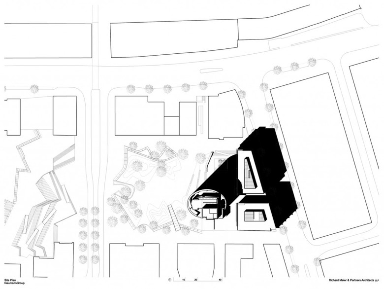 The relationship of the buildings to the urban context is of vital importance. The complex and plaza form a sculptural border to the development’s expansive open spaces, and the three buildings rise from the elevated plaza and delineate the city block, giving a sense of place and community to the area.