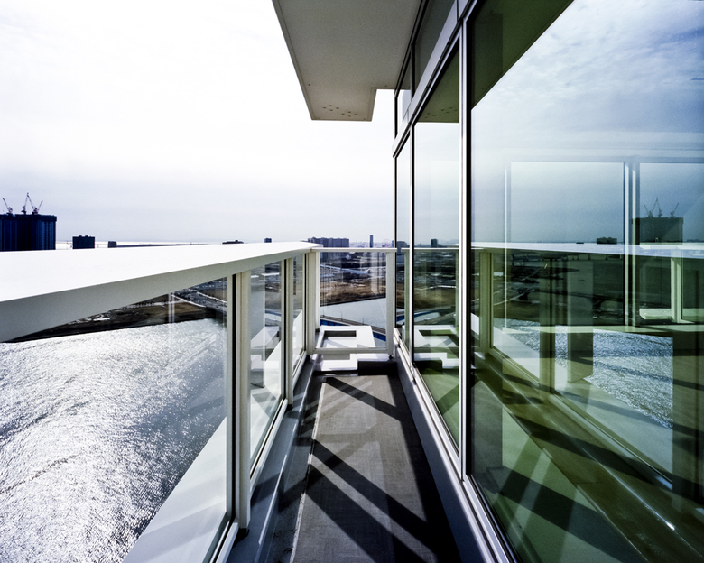 Situated on the waterfront promenade of Tokyo Bay, this project is a focal point for the Harumi district. The buildings are highly visible along the Harumi Canal and from the Harumi Bridge when commuting from the waterfront district toward the center of Tokyo.