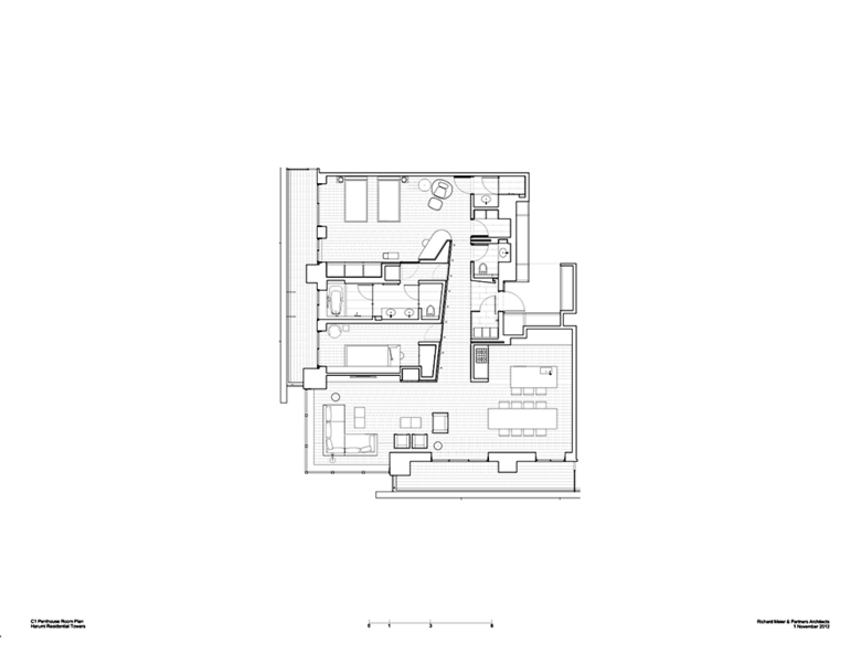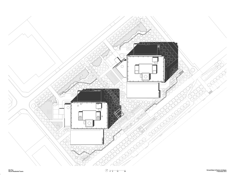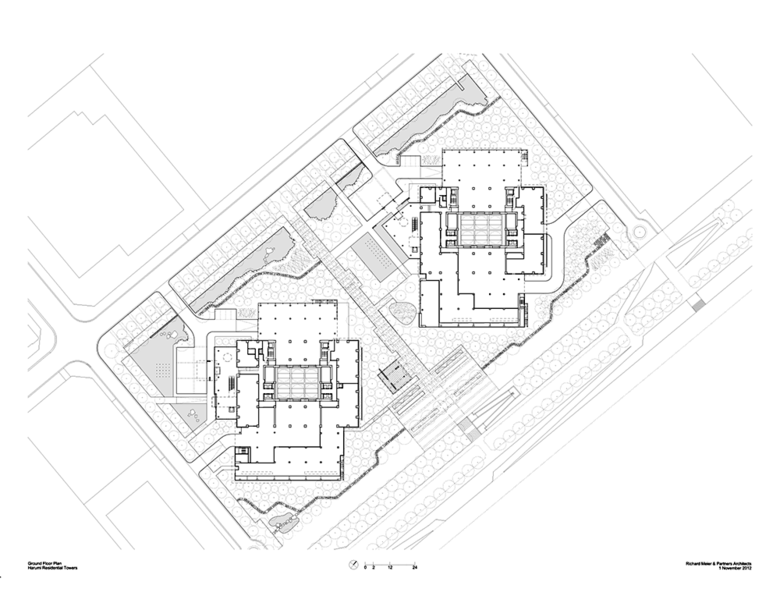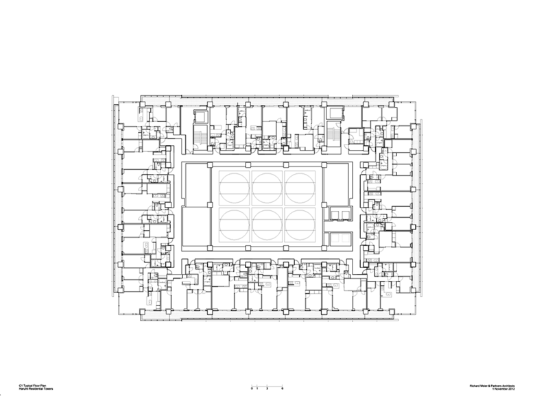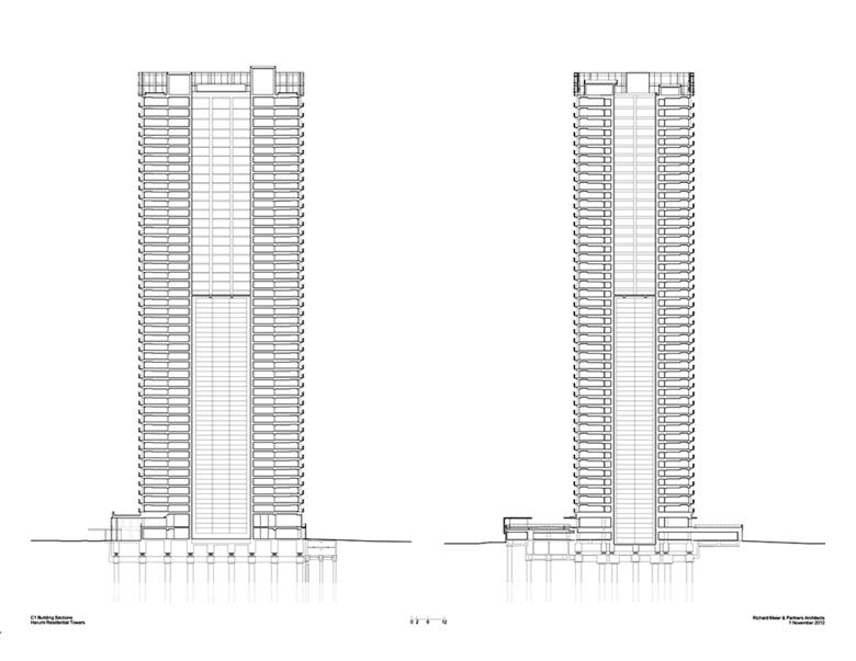 The two residential towers of the Harumi 2-Chome Condominium project are each 48 stories tall and contain 1,800 units.  At equal heights of 172 meters tall, the towers capitalize on expansive views of the Harumi Canal stretching off into the horizon.  Oriented North-South as a response to urban planning requirements, the towers create an exceptionally open and liberated residential atmosphere of sky and seascape with views of many significant urban landmarks including the Rainbow Bridge.