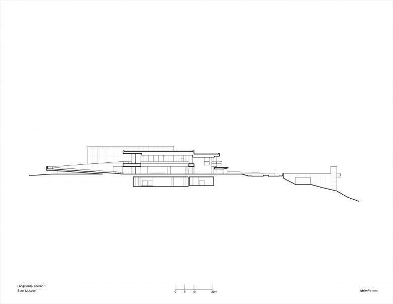 The museum is distinguished by the pure and serene interior exhibition spaces. The collection housed in the “cube” is contained within an extra tall space crowned with a skylight treated with opaque-translucent glass for diffused light. Modestly sized windows are strategically placed to enliven the space with controlled natural light and create framed views toward the park while still maximizing wall space for exhibits. Each gallery has a unique character, with the ability to completely control the gradation of natural light and artificial light, allowing curators to create a specific light experience depending on the requirements of the art.