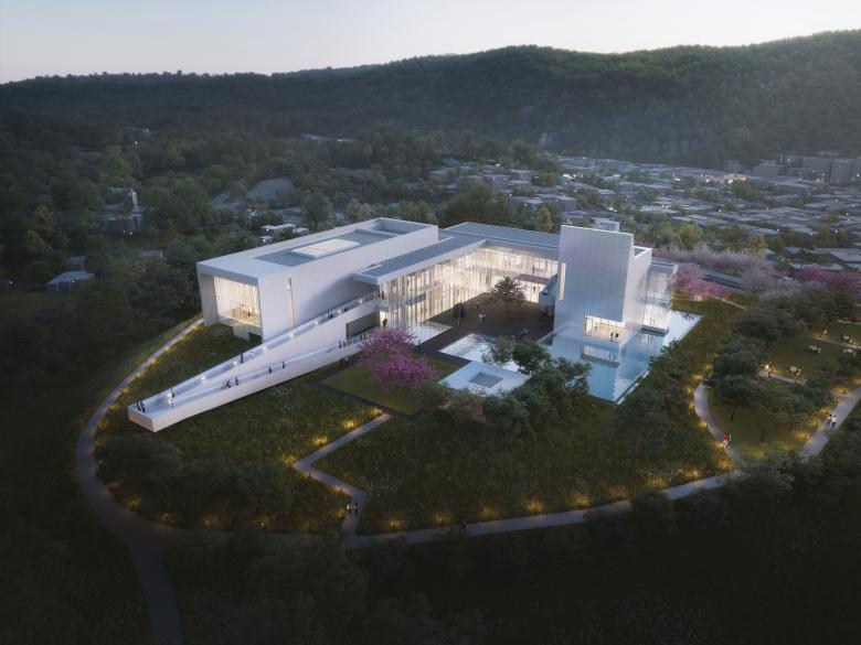 The overall architectural design is inspired by the heritage of Korean Confucianism and its philosophy of art, expressed through simplicity of form, materiality, and composition and through a harmonious relationship to nature.