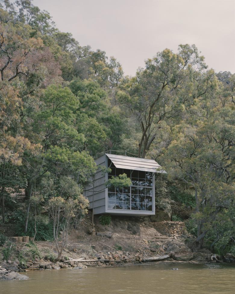 Marra Marra Shack is built using timber pillars made out of repurposed 200 years old electrical posts. The house is entirely built in timber; only the facade is covered by thin, fire-resistant fiber cement sheets.