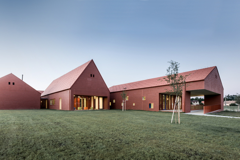 During the design phase we strived to preserve the scales of the village. We chose the archetypical form of rural houses. Small independent pavilions were the bases of our spatial system which envelopes all three functions: a nursery, health visitor centre and a surgery.