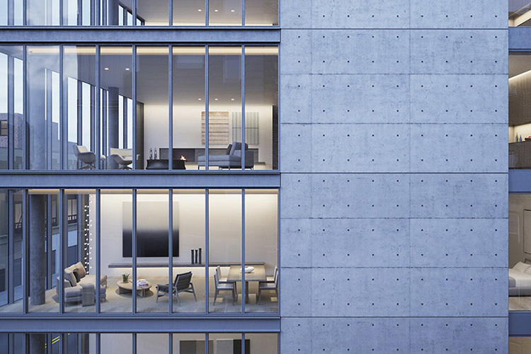 Herzog & de Meuron's newest residential project for Ian Schrager is located at 357 West Street in New York's West Village, overlooking the Hudson River.