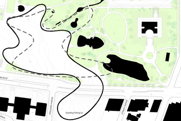 In lieu of cantilevering over the adjacent La Brea tar pits, Peter Zumthor's design for the Los Angeles County Museum of Art proposes to span Wilshire Boulevard.