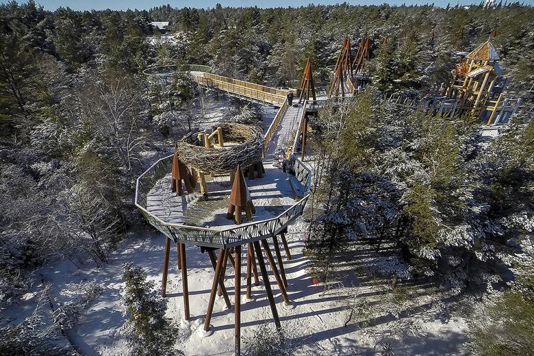 The Wild Walk lifts visitors above the treetops of The Wild Center and the surrounding Adirondacks in Upstate New York. Designed by Linearscape and open since July 2015, the Wild Walk echoes the surrounding pine trees through the form of Cor-ten steel posts that support the walkways. The...