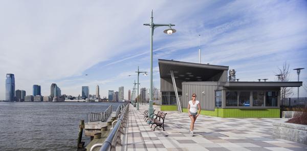 The Hudson River Park stretches from Battery Park City at the southern tip of Manhattan to West 59th Street. This transformation of the island’s industrial waterfront and its many piers into recreational parkland features a number of new structures, including these four structures west...