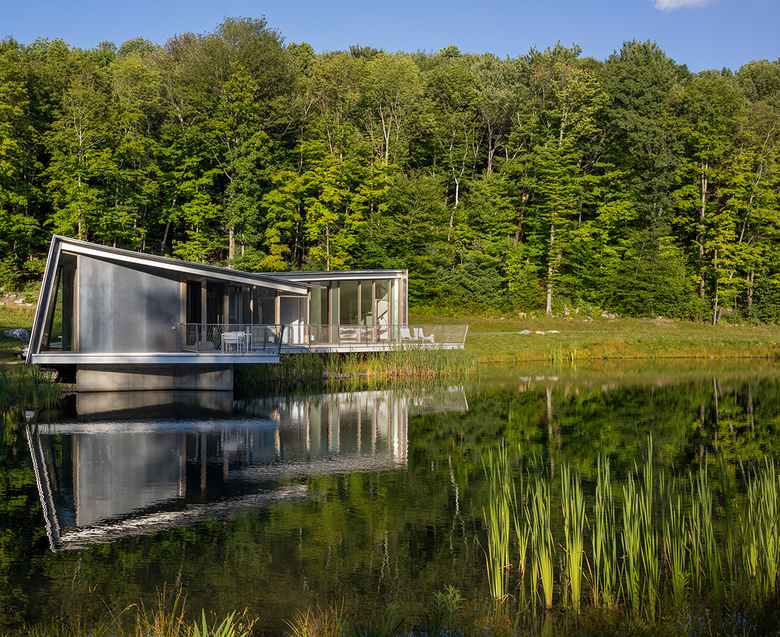 This house, located a few hours north of New York City, takes its name from the pond it sits upon and looks across. Following the pond's edge, the house's curved form also relates to the sun overhead. Dean / Wolf Architects answered a few questions about Ephemeral Edge.