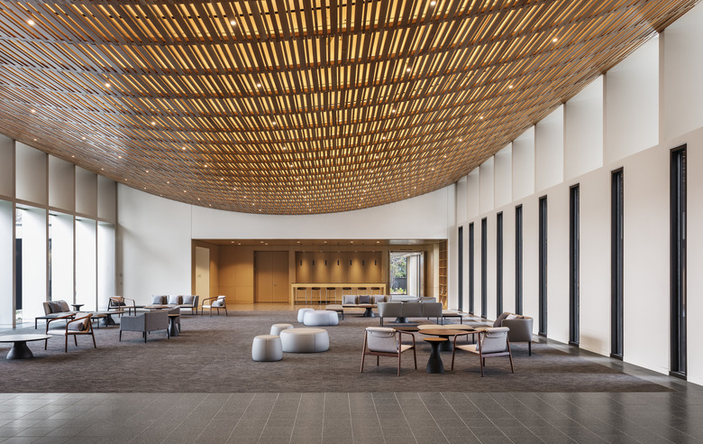 This civic hall in Kamaishi, Japan, that replaces the one destroyed in the 2011 Tohoku earthquake and tsunami offers numerous cultural venues marked by flexibility. Most striking is the glass-roofed "People's Plaza" that hosts outdoor performances and other events. Aat + makoto yokomizo...